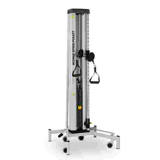 The Lojer speed pulley is ideal for practices with limited space. At no taller than 190 cm, these devices are easy to move to where they are needed in clinics. Even bedridden patients can exercise using the speed pulley. These mobile pulleys are perfect for use at home too, and they’re essentially as versatile as stationary devices. The lower height means the pulleys won’t topple over and are easy to move around. Mobile equipment is not suitable for use with the boom for lat pull downs.